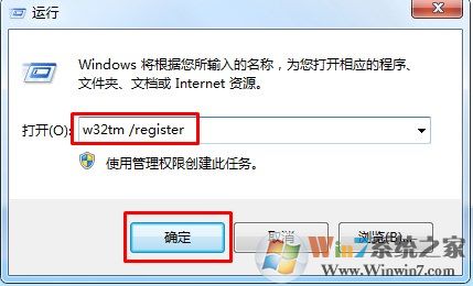1、打開“運行”對話框(通常按Win+R組合鍵就可以打開),然后輸入“w32tm /register”進入注冊。