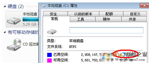 7、我們看看安裝完成后C盤已使用2.7GB的空間,而ESD文件只有316M,可見這個壓縮率還是很高的。如果是GHO文件最少也得要700M-800M吧或者更多。