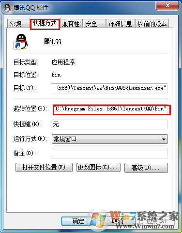 2、找到快捷方式中的起始位置,也就是安裝位置