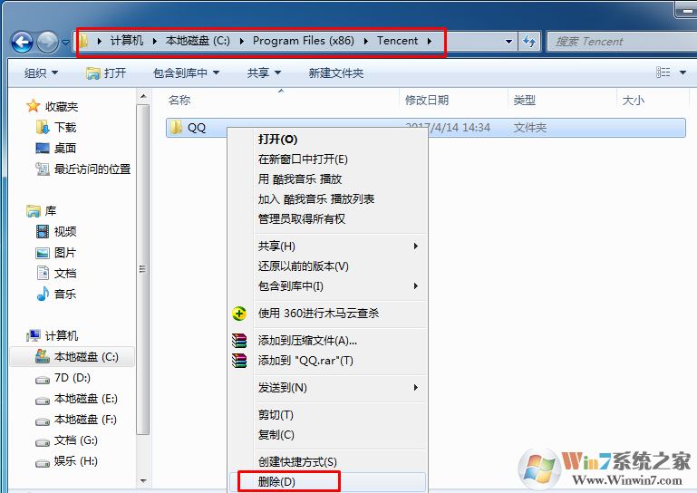 1、首先我們要先找到軟件的安裝位置,然后記錄下來,這里我們就以QQ為例子,桌面右鍵被卸載程序的圖標
