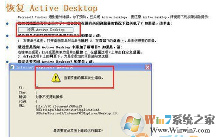 1、可以單擊顯示的“還原Active Desktop”,有大概會恢復(fù),但依然會顯示,也有大概會發(fā)生錯誤