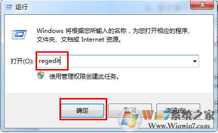 2、運行開始菜單—執(zhí)行,輸入regedit,單擊確定,進入注冊表編輯器;