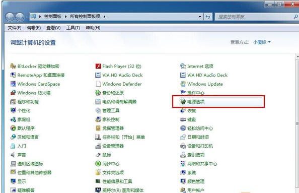 2、在所有的控制面板項(xiàng)中找到“電源選項(xiàng)”,點(diǎn)擊它進(jìn)入下一界面。如下圖所示: