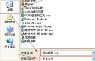 四、最關(guān)鍵的一步:在“另存為”對話框內(nèi),點(diǎn)擊左側(cè)的“桌面”,之后在對話框下方的“文件名”框中輸入“顯示桌面.scf”(不帶引號),類型一定要選擇“所有文件”,“編碼”選擇“ANSI”最后點(diǎn)“保存”。