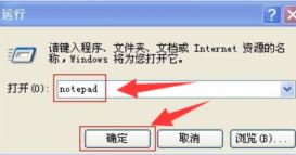 二、在“運(yùn)行”框中輸入“notepad”(不帶引號),點(diǎn)擊“確定”。