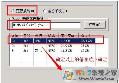 我的gho文件是拷貝到的路徑是:D:\media\win7.gho