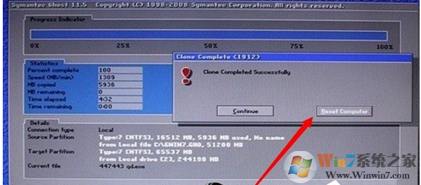 4、還原文件完成后點擊“reset computer ”提示重啟你的電腦。
