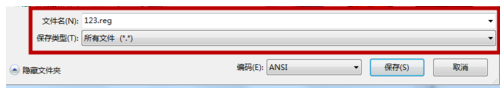 3、接下來(lái)保存文件。保存時(shí)注意,不要直接關(guān)閉保存,而是選擇“另存為”。填寫好文件名之后,把文件的后綴名字改為“.reg”,保存類型選擇”所有文件“。