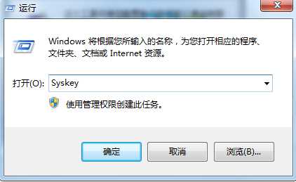 2、在“運(yùn)行”程序窗口,輸入Syskey,并點(diǎn)擊“確定”如下圖所示: