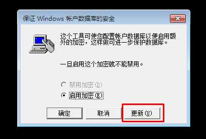 3、在出現(xiàn)的“保證Windows賬戶數(shù)據(jù)庫(kù)的安全”窗口,點(diǎn)擊“更新”,