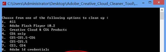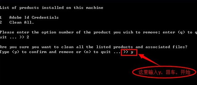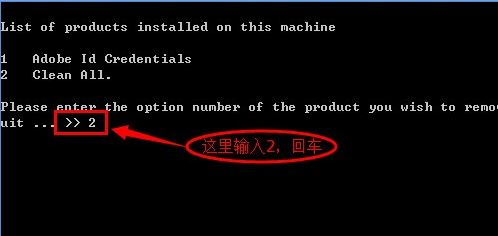 5、選擇要卸載的photoshop版本,然后輸入對應(yīng)的數(shù)字即可,然后回車,(1的話是將所有的adobe給清理,如果不想其他軟件失效的話不要選擇1)如圖: