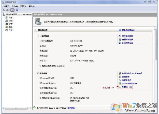 2、在右邊選擇【安全信息】,點擊【配置IE ESC】。如下圖: