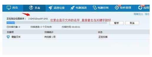 3、如果你忘記了也不要緊,利用電腦管家掃描,然后找到其中文件的名字