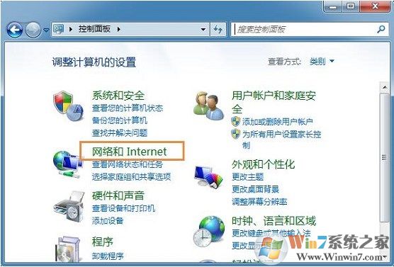 2、然后點擊“網(wǎng)絡(luò)和internet ”