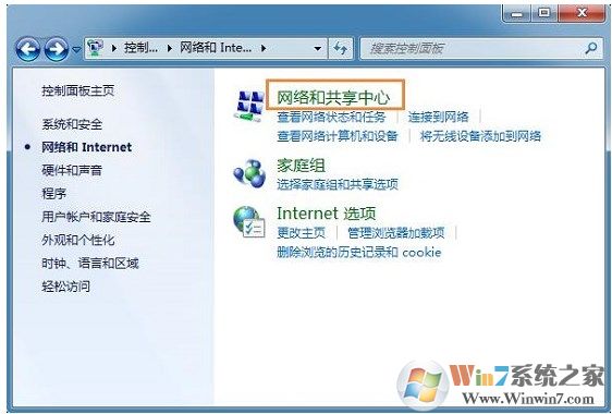 3、選擇“網(wǎng)絡(luò)和共享中心”