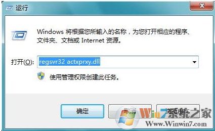 1、點擊開始菜單,選擇“運行”,輸入regsvr32 actxprxy.dll;