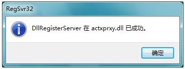 2、點擊確定,你將會看到“DllRegisterServer 在 actxprxy.dll 已成功”。