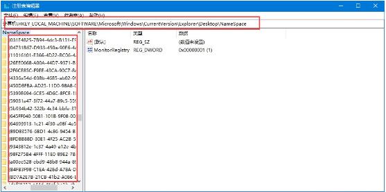 2、接下來找到這一路徑【HKEY_LOCAL_MACHINE\SOFTWARE\Microsoft\Windows\CurrentVersion\Explorer\Desktop\NameSpace\】,這個文件夾下除 1f 、45 、64 、el打頭的文件,其余全部刪除,如不能刪除右擊【權(quán)限】-【刪除】-【確定】依次清理后刷新即可!