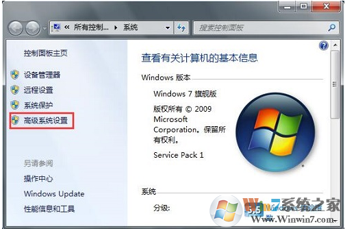 ?、谠谙到y(tǒng)窗口中,選擇高級(jí)系統(tǒng)設(shè)置,如圖所示:
