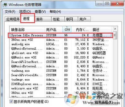 如果在剛開機時發(fā)現(xiàn)System Idle Process的CPU占用值很低,請注意后臺有哪些大的程序在運行或者感染病毒。