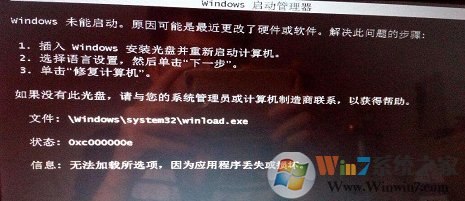 有用戶安裝Win7系統(tǒng)后遇到故障問(wèn)題提示”無(wú)法加載所選項(xiàng),應(yīng)用程序丟失或損壞的故障,錯(cuò)誤代碼:0xc000000e“的問(wèn)題,怎么回事呢?其實(shí)這是由于引導(dǎo)文件沒(méi)有正確設(shè)置導(dǎo)致加載失敗的原因。針對(duì)此問(wèn)題,下面小編和大家分享解決方法。