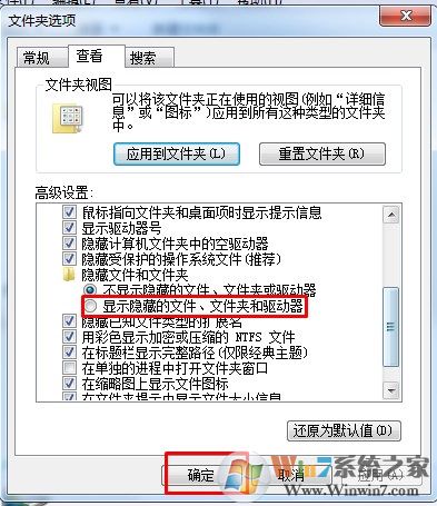 3、點擊查看,找到顯示隱藏的文件夾和文件這個選項,勾選即可