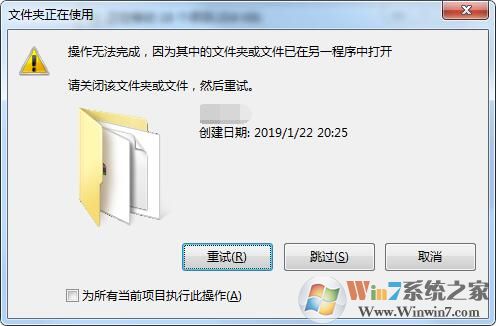 3、然后根據(jù)進(jìn)程來(lái)判斷是哪個(gè)程序,關(guān)閉程序或結(jié)束進(jìn)程后就可以回到移動(dòng)界面,繼續(xù)移動(dòng)文件夾了。如上圖所示。
