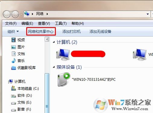 2、選擇網絡和共享中心