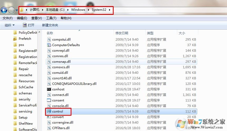 打開文件夾,在地址欄輸入:C:\windows\system32\control