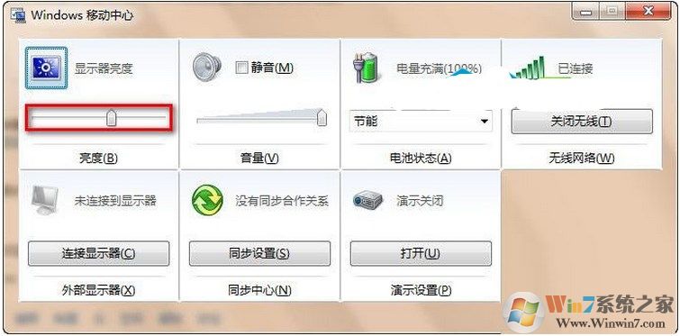 按“Win+X”組合鍵,打開Windows移動中心,調(diào)節(jié)亮度即可。如圖2所示