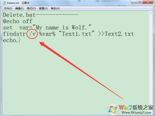 8、程序中的v參數(shù),英文是invert,意思為“反轉(zhuǎn)、使顛倒”,即刪除指定字符串。