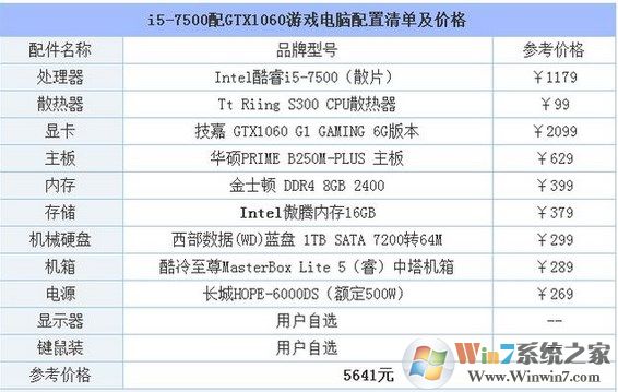 下面裝機(jī)之家先分享一下i5-7500配GTX1060游戲電腦配置清單及價(jià)格,詳細(xì)電腦配置清單如下。
