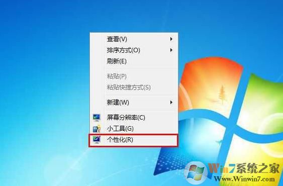 1、首先我們?cè)谧烂婵瞻滋廃c(diǎn)擊鼠標(biāo)右鍵,彈出的菜單中選擇“個(gè)性化”;
