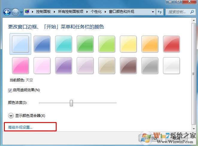 3、然后我們?cè)冱c(diǎn)擊如下圖所示的“高級(jí)外觀設(shè)置”;