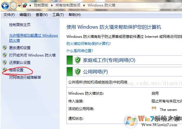 1、通過(guò)防火墻可以直接關(guān)閉的,很簡(jiǎn)單,在控制面板的“Windows 防火墻”頁(yè)面左側(cè)找到“高級(jí)設(shè)置”打開(kāi)。
