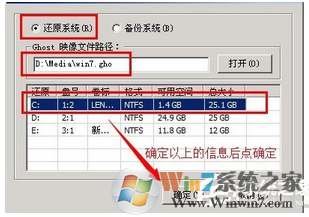 我的gho文件是拷貝到的路徑是:D:\media\win7.gho