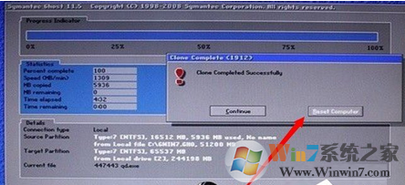 4、還原文件完成后點擊“reset computer ”提示重啟你的電腦。