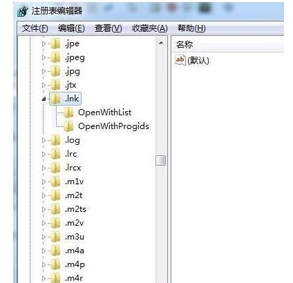 3、展開“.lnk”,在下面可以看到【openwithlist】 和 【openwithprogids】 兩項(xiàng),若有其他項(xiàng)刪除即可;