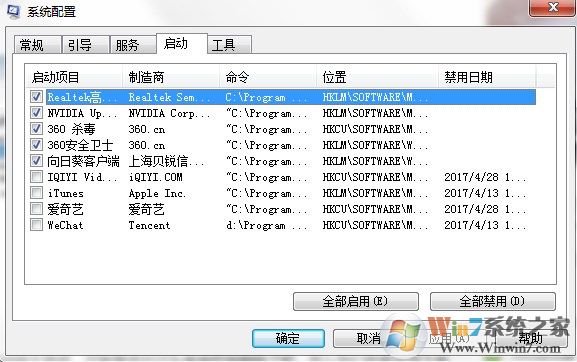 3、在打開的系統(tǒng)配置窗口中,我們切換到啟動(dòng)選項(xiàng)卡下,找到一個(gè)名為Ctfmon的選項(xiàng),勾選前面的小勾,由于這里我沒有這個(gè)選項(xiàng),如圖所示: