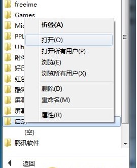 6、右鍵啟動(dòng)這個(gè)文件夾之后,選擇打開選項(xiàng),如圖所示: