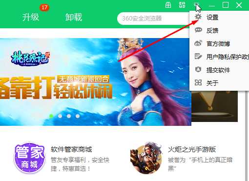 2、點擊右上角的小箭頭,然后點擊“設置”;