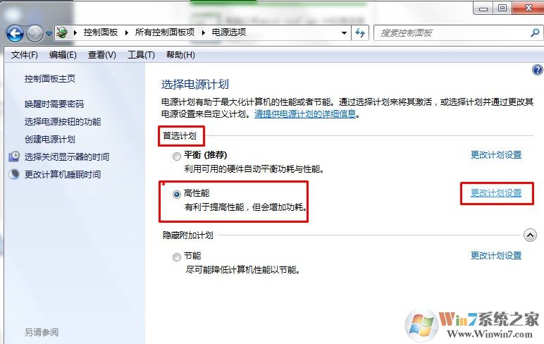 4、在彈出來的頁面中選擇點擊左側(cè)的“更改計劃設(shè)置”項;