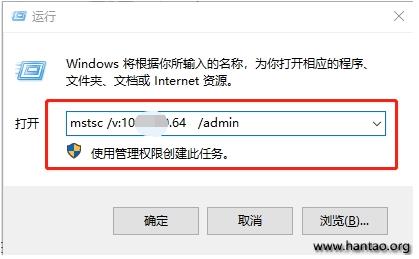 2.輸入mstsc /v:服務(wù)器IP /admin 命令登陸遠程【注意mstsc后有空格,IP后有空格】如下圖: