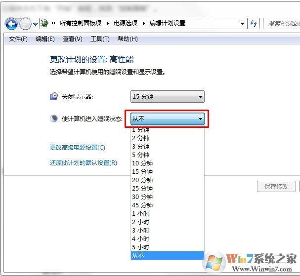 第四步、此時進入更改界面,你可以更改“使計算機進入睡眠狀態(tài)的時間”即,電腦在無人操作的情況下待機時間,這一點要注意的是:電源模式的不同,更改的時間也不一樣,要看清。
