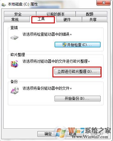 3、選擇到工具,然后點(diǎn)擊磁盤碎片整理