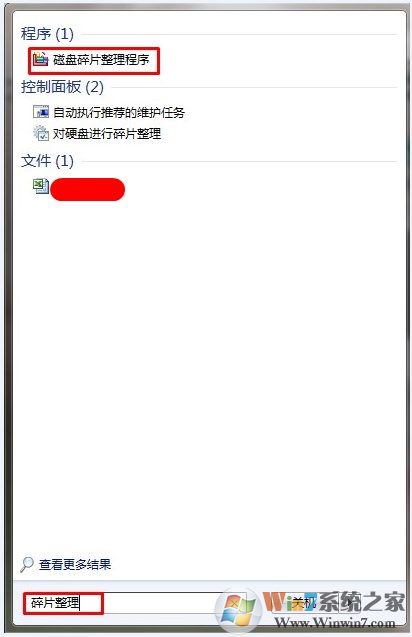 1、在開始菜單搜索欄輸入碎片整理,我們就可以看見(jiàn)磁盤清理工具了