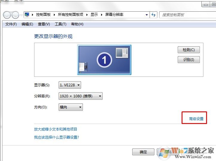 調(diào)節(jié)之后點擊確定按鈕,如果是液晶顯示器則不用調(diào)節(jié)刷新率,如果你的顯示器是crt顯示器,則需要調(diào)節(jié)一下刷新率,因為會感覺屏幕閃爍,眼睛不舒服。還是在此頁面,點擊高級設(shè)置選項。