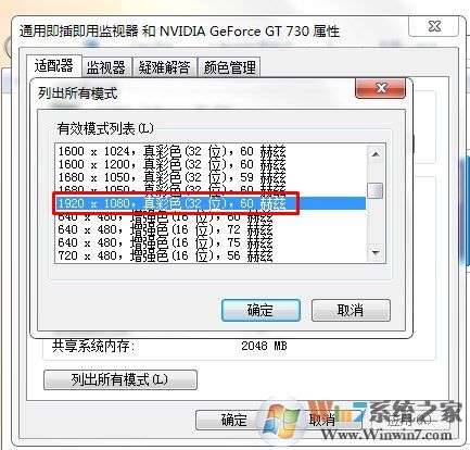 接下來會列出所有的可用的分辨率的模式。請選擇剛才你設(shè)置的分辨率選項,然后要注意一下后面的刷新率,crt顯示器的默認刷新率為75hz,選擇這個選項,然后確定就可以了。