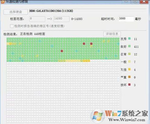 另外在安裝安裝的時(shí)候,看看有沒有關(guān)于【數(shù)據(jù)錯(cuò)誤(循環(huán)冗余檢查)】這個(gè)提示,如果有的話那么可以判斷是硬盤上的問題,diskgenius對用戶電腦進(jìn)行檢測后發(fā)現(xiàn),果然電腦硬盤里面存在紅色的損壞標(biāo)識。