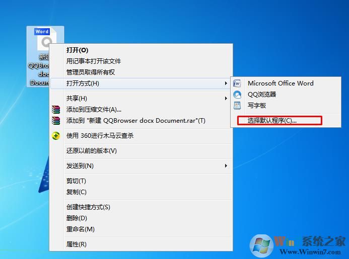 1、右鍵點擊docx文件,然后右鍵選擇打開方式,選擇默認(rèn)程序。